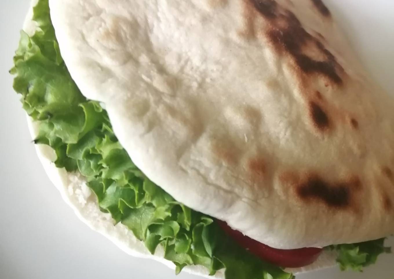 - Cortar en tiras la pechuga de pollo, partir a la mitad el pan pita, rellenar el pan pita con lechuga, tomate, pechuga de pollo y el aderezo de yogurt y servir.