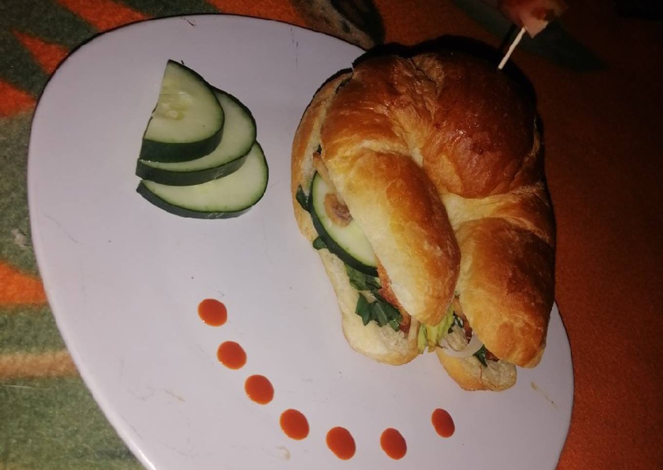 - Cortamos el Cuernito por la mitad, agregamos mayonesa, colocamos una capa de espinacas, algunos aros de cebolla, un poco de pepino, aguacate y las fatigas de pescado.