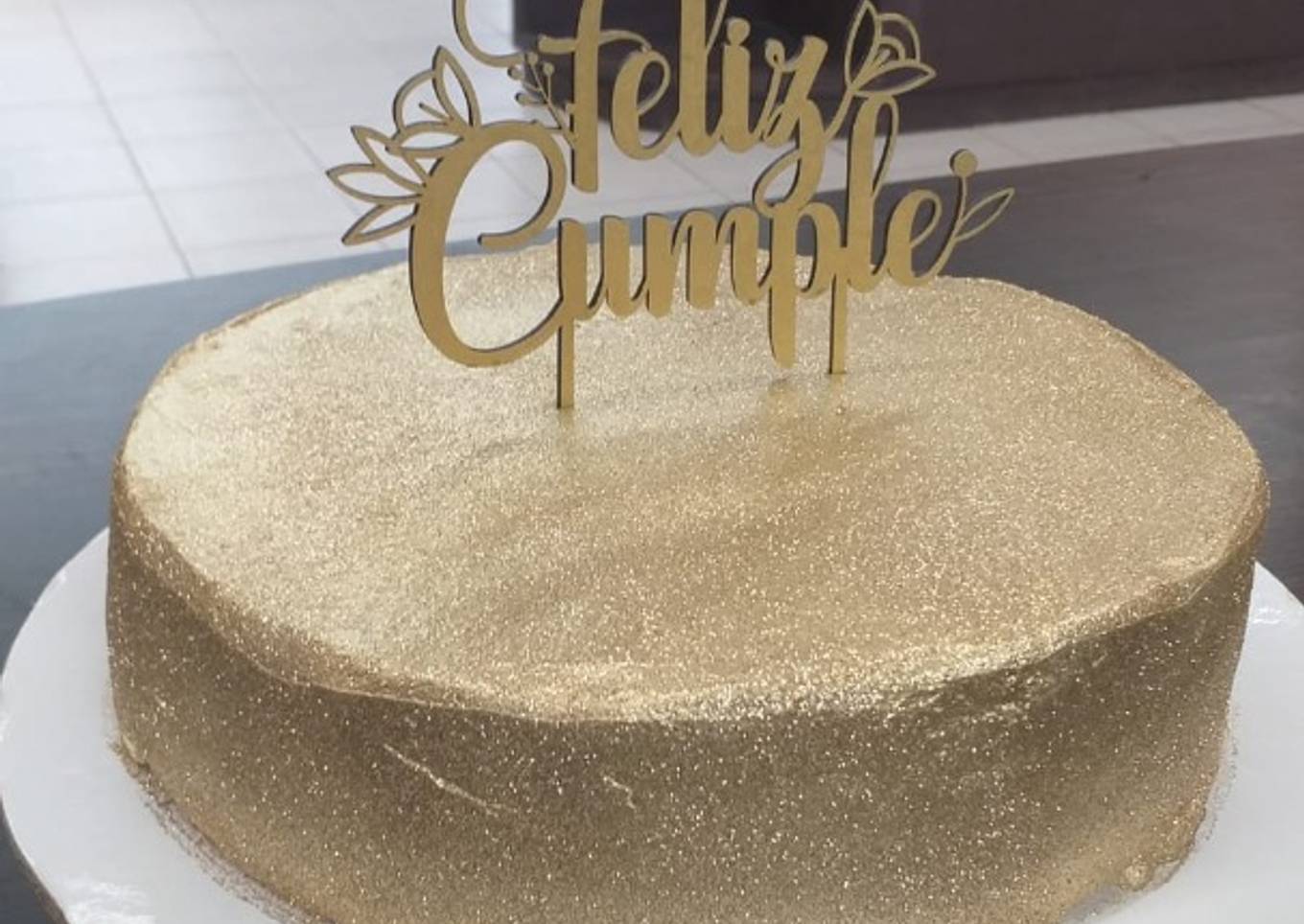 - Una vez pasada la media hora de refrigeración colocaremos el bizcocho en una base giratoria para alisarlo con nuestra crema amarilla, enseguida agregamos el matizador seguido del glitter.