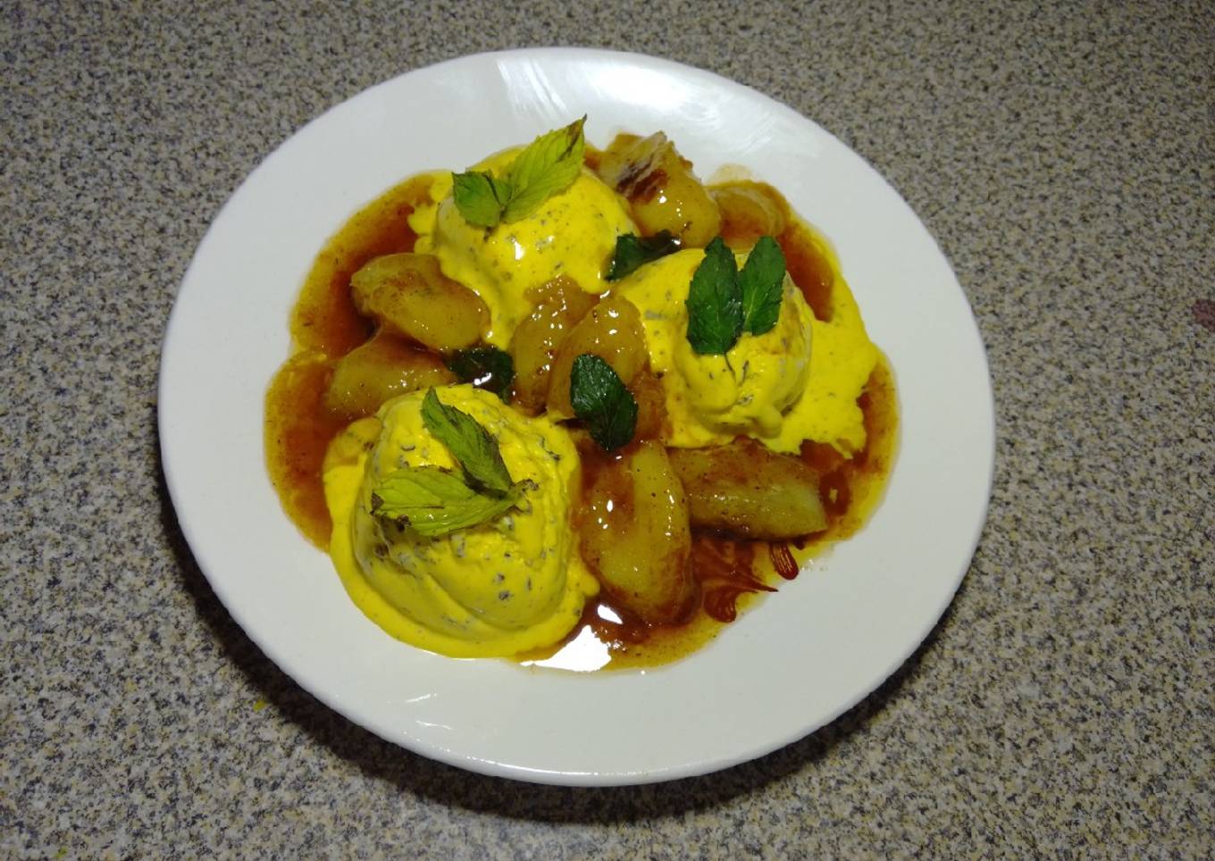- Decoraremos con hierbabuena y por último agregaremos la salsa que previamente preparamos.