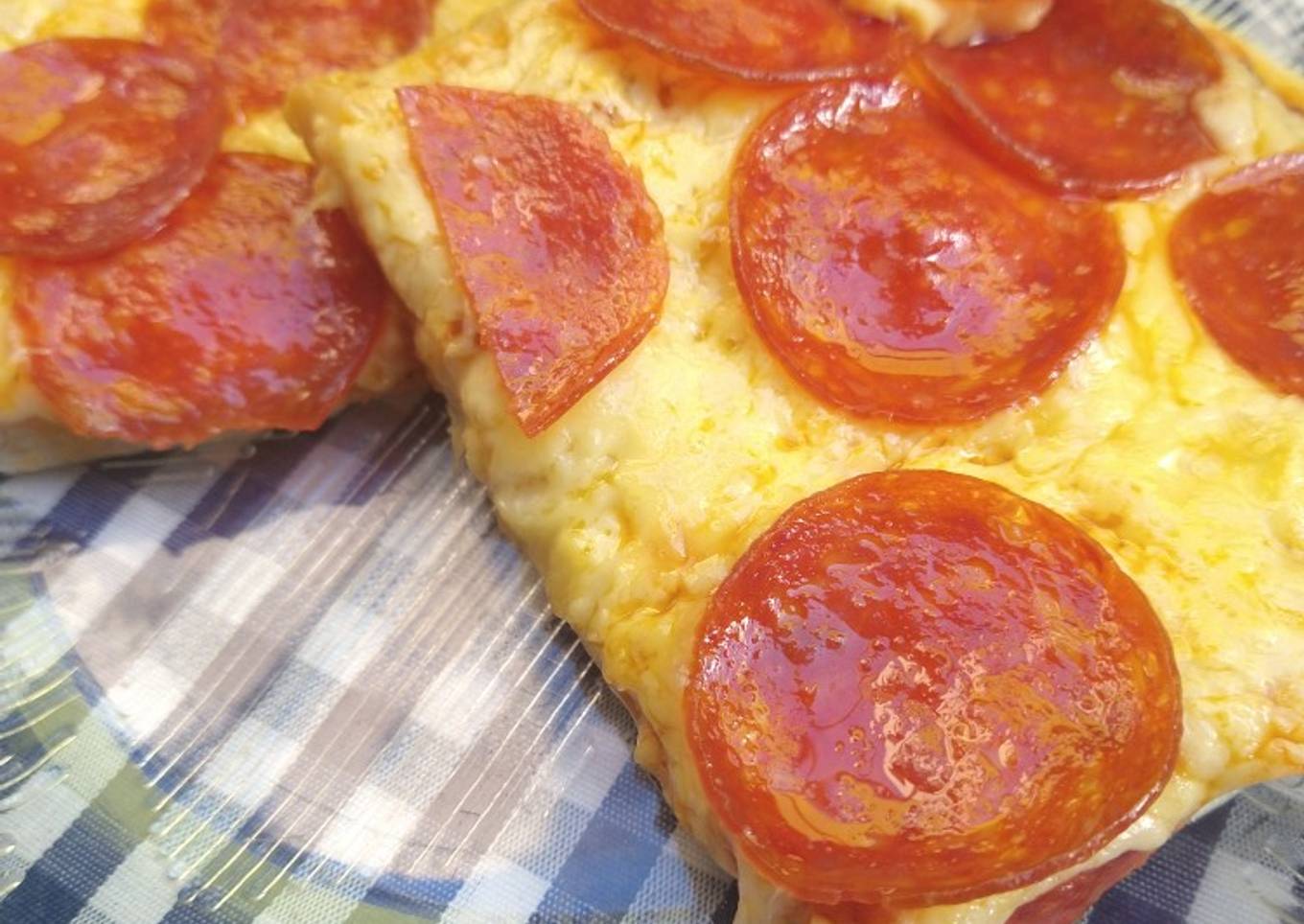 - Una vez que esté estirada agregamos la salsa, queso y el pepperoni (el relleno puede cambiar al gusto de la persona)