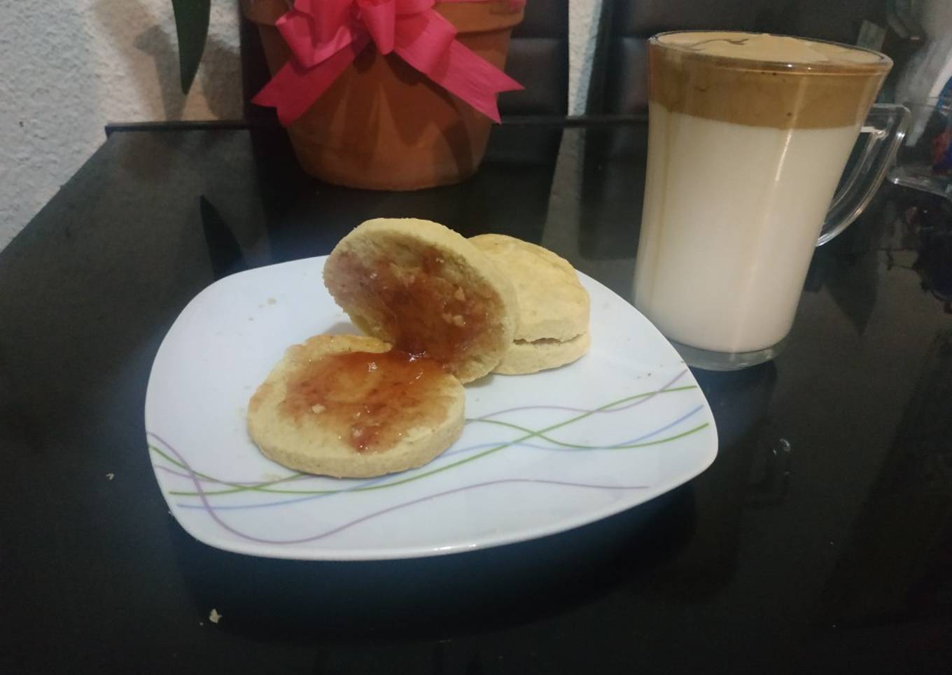 - Lo puede acompañar con te o con otra bebida yo lo acompañé con un café dalgona y mermelada de fresa y chabacano