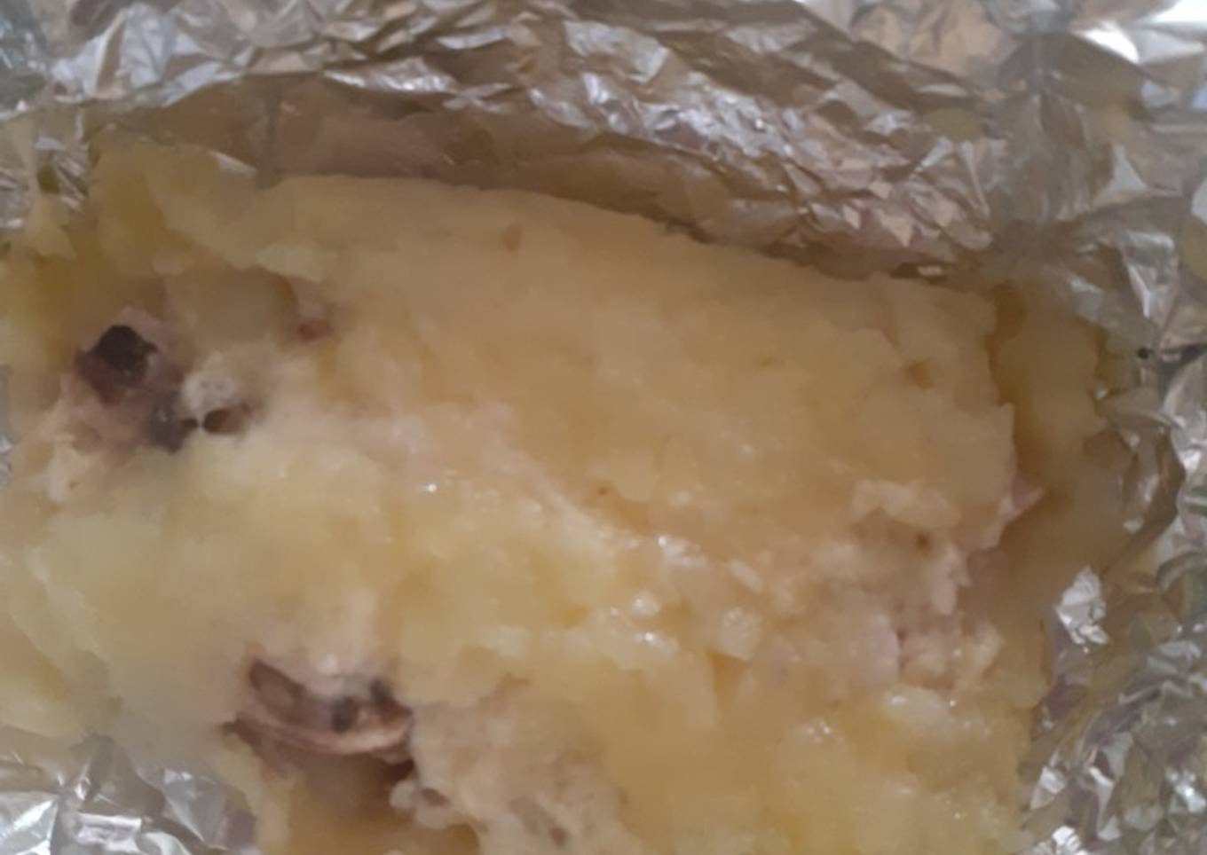 Papa rellena de pollo y champiñones
